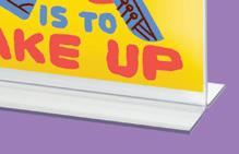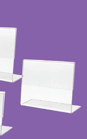 • Mount to shelving end panels with double-sided tape (not included) or use with black plastic Sign Base (sold separately) for freestanding applications