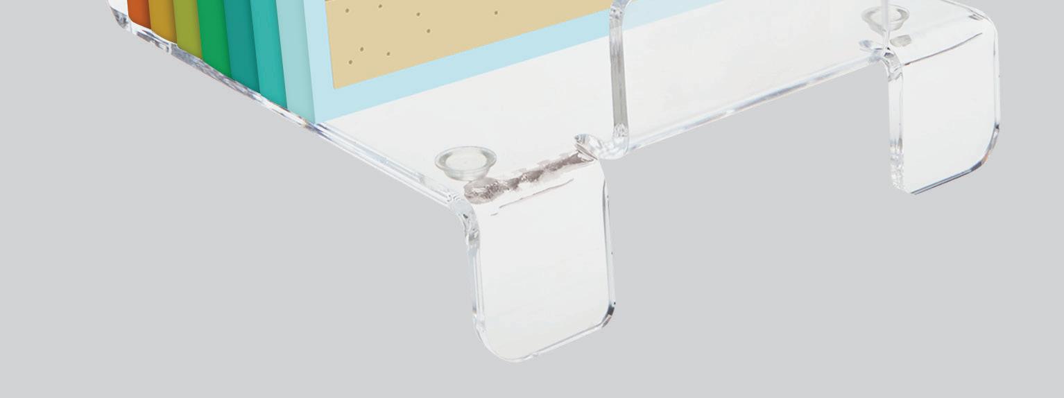 • Double-sided holders are bottom loading and include self-standing, molded bases