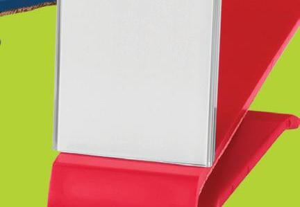 • Triangular, 4"W display bases prevent tipping and are designed to hold heavy paper stock or laminated cards up to 1⁄16" thick 0