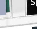 • Mount to bins with double-sided adhesive (not included), or place in black plastic Sign Base (sold separately) for freestanding applications