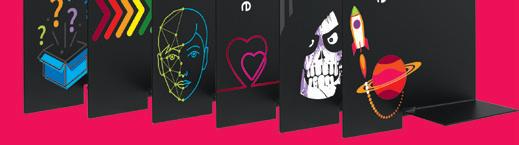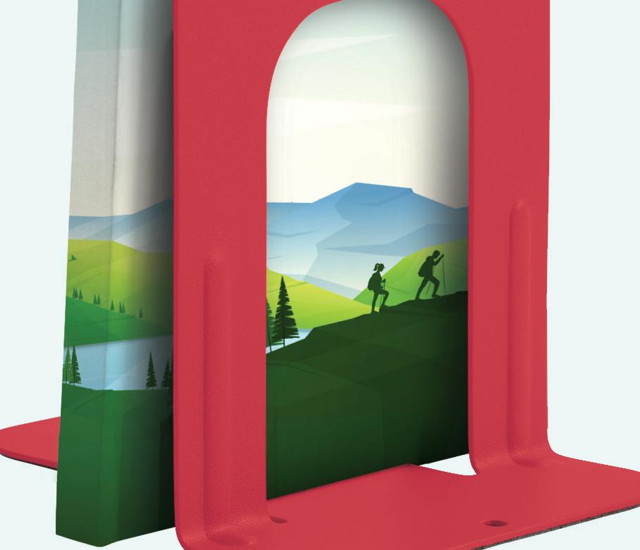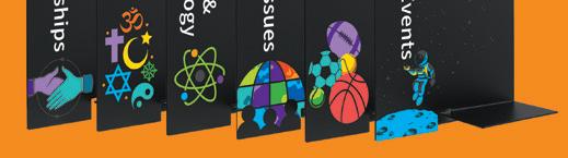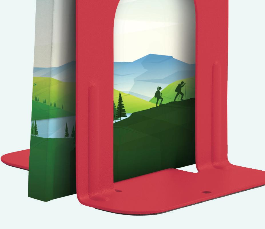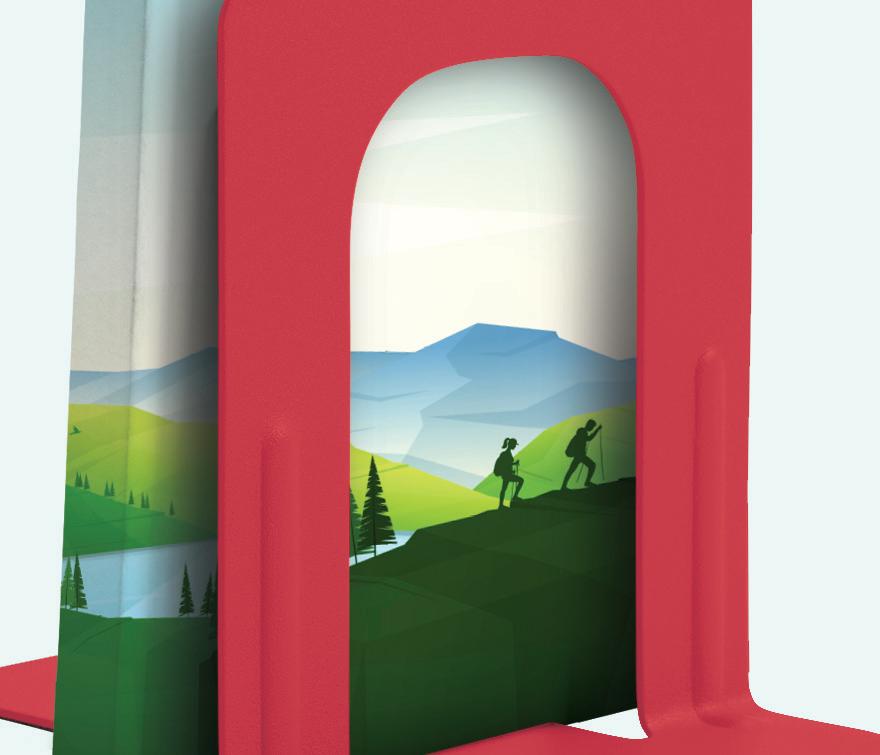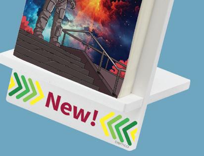 Graphic tabletop easels grab attention when books are displayed and encourage readers to check back later when they’re empty