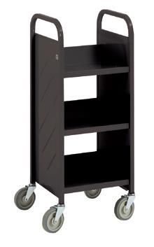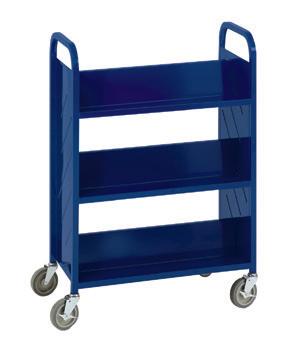 Flat shelf booktrucks are ideal for transporting equipment and supplies. Sloped shelves are perfect for reshelving. End-of-range booktrucks are great for tight spaces. Whichever you choose, these strong, silent types roll with no rattles.