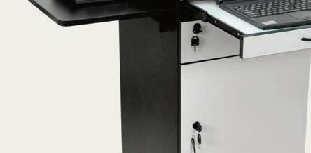 • Height-adjustable work surfaces support good ergonomics when sitting or standing