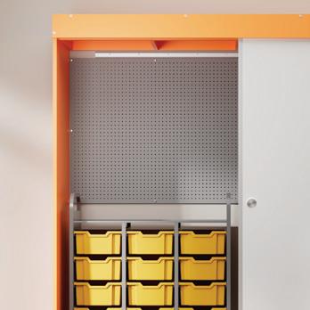 Storage with covers, curtains, or doors to block items from view can help decrease visual noise. For items used only weekly or quarterly, teachers can plan storage accordingly, so the right materials are easy to access.