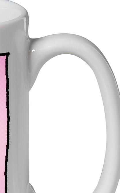 • White ceramic. Holds 15 oz. Hand washing recommended. Arrives in a gi box.