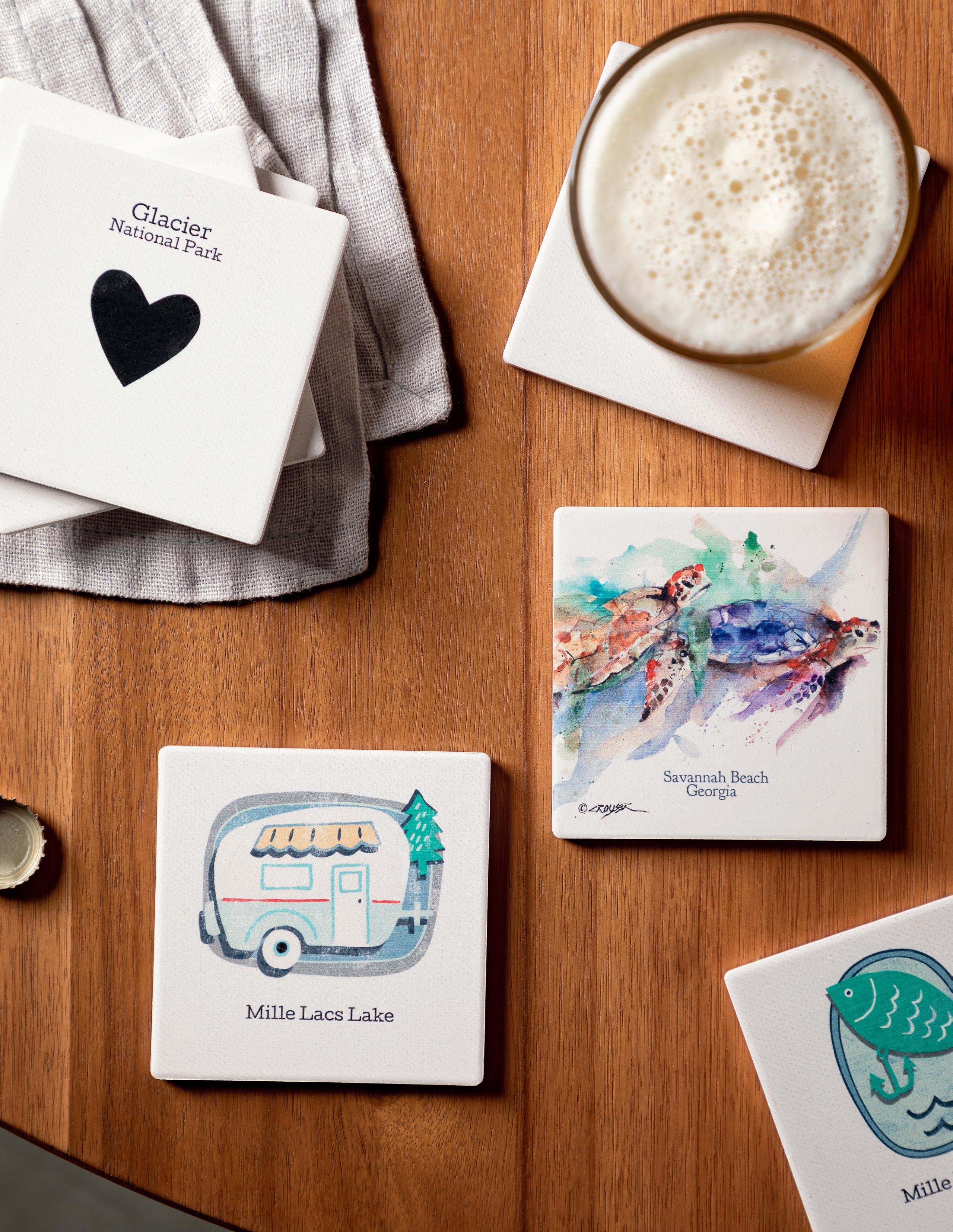 The places we go shape us the most. Breaking from routine, exploring new terrain and seeking adventure revives the deepest parts of our souls and stay with us long after our return. Fostering that fond recollection is the simple souvenir, taking us back to the feeling of untethered freedom. With barware, mugs, coasters, travel tumblers and more, the souvenir takes on a more functional form to entertain guests and prompt storytelling with every use. All formats are customizable with personalized options for each region courtesy of Make It Yours!
