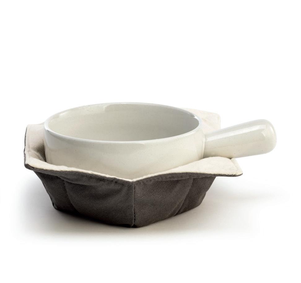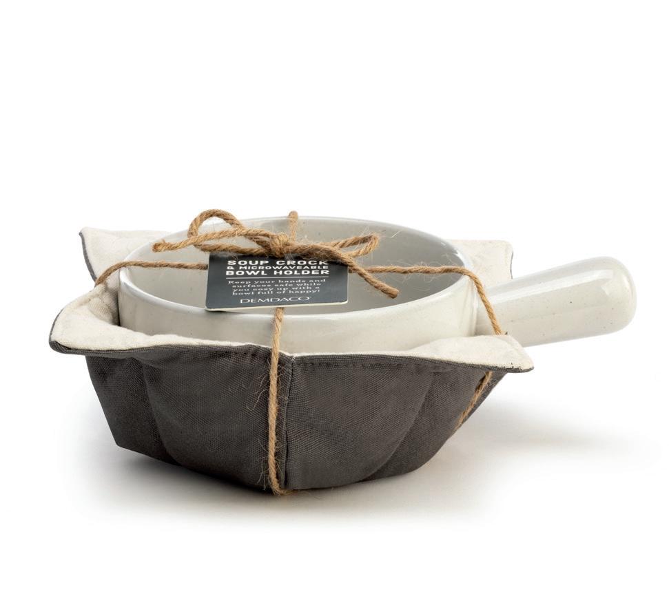 Bowl Cozy: Do Not Microwave; Soup Crock: Microwave & Dishwasher Safe