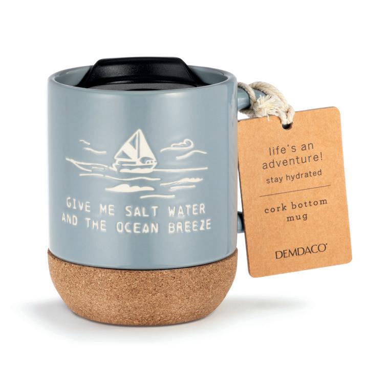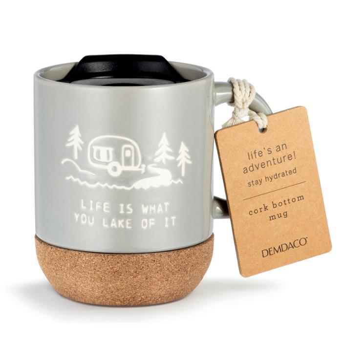 Lake From campsite escapades to laughter shared around the fire, lake life is all about making memories and building bonds. By surrounding yourself with things that bring to mind memories out on the water, you’re better able to find gratitude and joy when it’s needed most. 3005051769 Lake Tri–Bowl (24 oz.) $15.00 ea. Min: 2 Size: 8.5”w x 8.5”d x 2”h Pkg: CB Season: E Materials: stoneware, leather Care: Handwash Only *638713614537* 3005051772 Lake Cork Bottom Mug (12 oz.) $11.50 ea. Min: 2 Life is what you lake of it Removable cork bottom coaster Size: 3.5”dia. x 5”h Pkg: CB Season: E Materials: stoneware Care: Handwash Only *638713614681* 3005051781 Lake Crock (42 oz.) $14.50 ea. Min: 2 Size: 4”dia. x 6”h Pkg: CB Season: E Materials: stoneware, leather Care: Handwash Only *638713614582* 3005051775 Lake Soup & Sandwich Plate (8 oz.) $16.50 ea. Min: 2 Life is what you lake of it Size: 9”dia. x 2.5”h Pkg: CB Season: E Materials: stoneware Care: Microwave Safe, Dishwasher Safe *638713614513* 3005051792 Lake Salt and Pepper Set $9.50 set Min: 2 Size: 2”w x 3”h Pkg: GB/A Season: E Materials: stoneware Care: Handwash Only *638713653208* 3005051795 Lake Heart Trinket Dish $5.50 ea. Min: 2 Size: 4”w x 3.5”h Pkg: BP Season: E Materials: stoneware Care: Handwash Only *638713653260* 3005051786 Lake Wood Serving Board with Spreader Set $8.00 set Min: 2 Size: 5”w x 6.5”h Pkg: BP Season: E Materials: wood Care: Food Safe, Handwash Only *638713653277* 3005051789 Lake Platter with Spoon & Napkin $30.00 set Min: 1 Spatula: Handwash Napkin: Do Not Bleach, Machine Wash - Cold, Machine Wash - Delicate, Tumble DryLow, Warm Iron as Needed Size: Spoon: 3”w x 12”long; Napkin: 19”w x 20”h; Platter: 16”w x 10.5”d x 1.5”h Pkg: CB Season: E Materials: stoneware, 100% cotton, wood Care: Dishwasher Safe *638713653178* 12 | DEMDACO Destinations | 888.DEMDACO (888.336.3226) | DEMDACOretailers.com | © 2022 DEMDACO