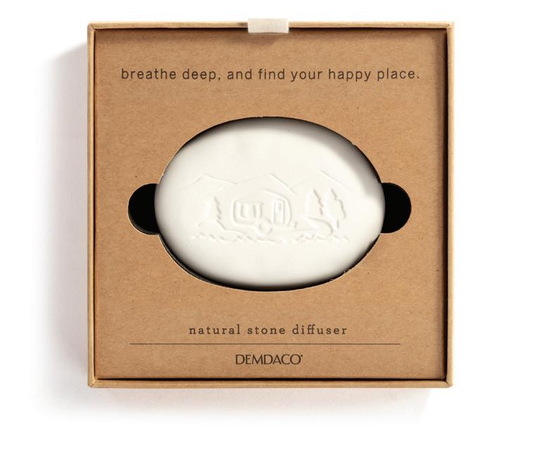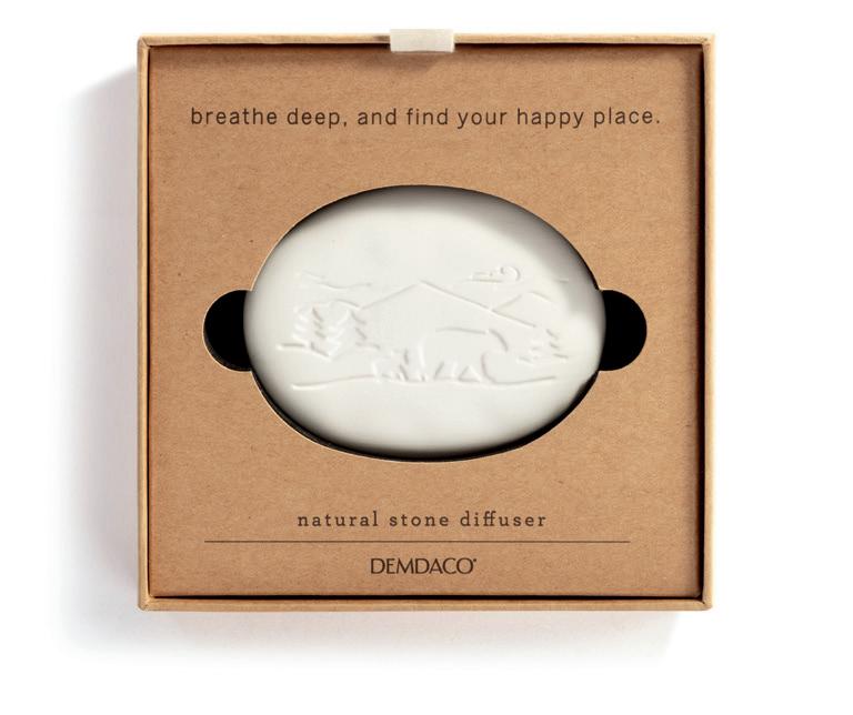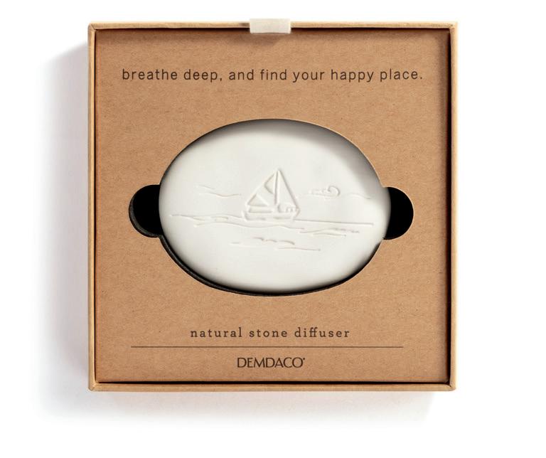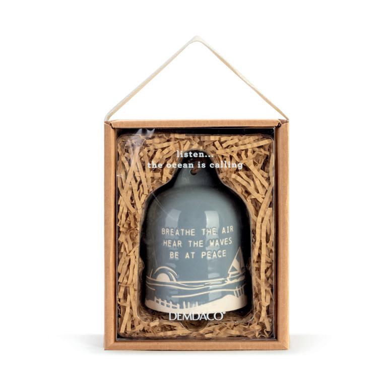 Essential Oil Set Enjoy a balance of invigorating scents in our set of three essential oils found in our Everyday catalog 3005051765 Ocean Diffuser Stone $7.00 ea. Min: 4 Size: 3.5”w x 3”h Pkg: BC Season: E Materials: earthenware Care: Wipe with Damp Cloth *638713614506* 3005051762 Ocean Bell $13.00 ea. Min: 2 Breathe the air. Hear the waves. Be at peace. Hangs with cording. Size: Bell: 3”w x 4.5”h; Hanger: 11” Pkg: GB Season: E Materials: stoneware, wood, jute *638713614728* 3005051780 Ocean Spoon Rest $9.75 ea. Min: 2 Give me salt water and the ocean breeze Size: 6”w x 3.5”h Pkg: CB Season: E Materials: stoneware Care: Handwash Only *638713614575* 3005051768 Ocean Frame $13.00 ea. Min: 2 You and me and the deep blue sea Holds 4 x 6 photo(s). Easel back. Size: 8”w x 7.5”h Pkg: CB Season: E Materials: stoneware, glass *638713614612* 3005051783 Ocean Crock (42 oz.) $14.50 ea. Min: 2 Size: 4”dia. x 6”h Pkg: CB Season: E Materials: stoneware, leather Care: Handwash Only *638713614711* 3005051777 Ocean Soup & Sandwich Plate (8 oz.) $16.50 ea. Min: 2 Give me salt water and the ocean breeze Size: 9”dia. x 2.5”h Pkg: CB Season: E Materials: stoneware Care: Microwave Safe, Dishwasher Safe *638713614735* 3005051771 Ocean Tri–Bowl (24 oz.) $15.00 ea. Min: 2 Size: 8.5”w x 8.5”d x 2”h Pkg: CB Season: E Materials: stoneware. leather Care: Handwash Only *638713614568* 3005051774 Ocean Cork Bottom Mug (12 oz.) $11.50 ea. Min: 2 Give me salt water and the ocean breeze Removable cork bottom coaster Size: 3.5”dia. x 5”h Pkg: CB Season: E Materials: stoneware Care: Handwash Only *638713614650* 10 | DEMDACO Destinations | 888.DEMDACO (888.336.3226) | DEMDACOretailers.com | © 2022 DEMDACO