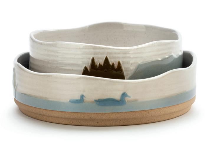 they nestle together for a perfectly serene display, portraying scenic views with dimensional realism. These beautifully crafted bowls are statement pieces that functionally fit in at home or at the cabin.