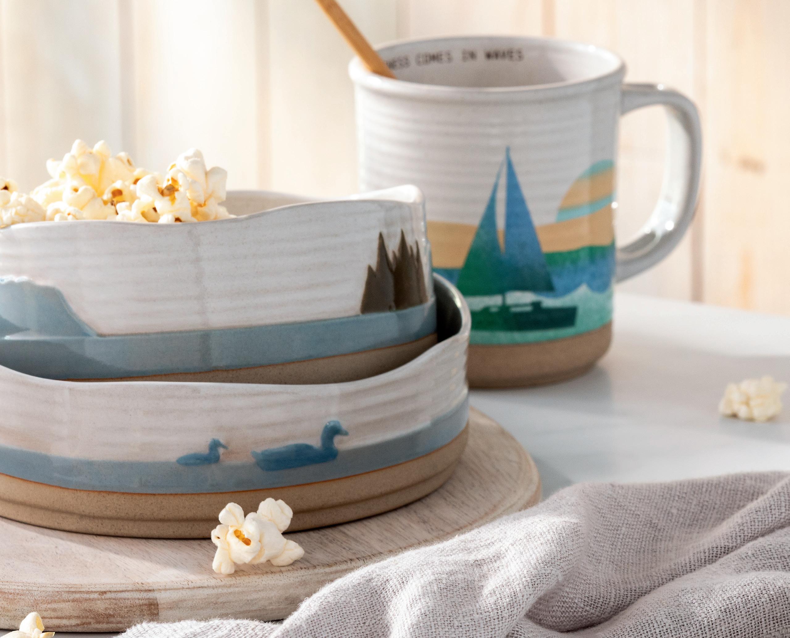 : Dishwasher Safe 3005051743 At the Lake Stacking Spice Cellar – Set of 2 (10 oz.) *638713589774* 3005051750 On the Beach Mug with Spoon (14 oz.) Happiness comes in waves *638713589729* 3005051749 At the Lake Mug with Spoon (14 oz.) Lake it easy *638713589798* 3005051748 In the Woods Mug with Spoon (14 oz.) Love that mountain air *638713589835*