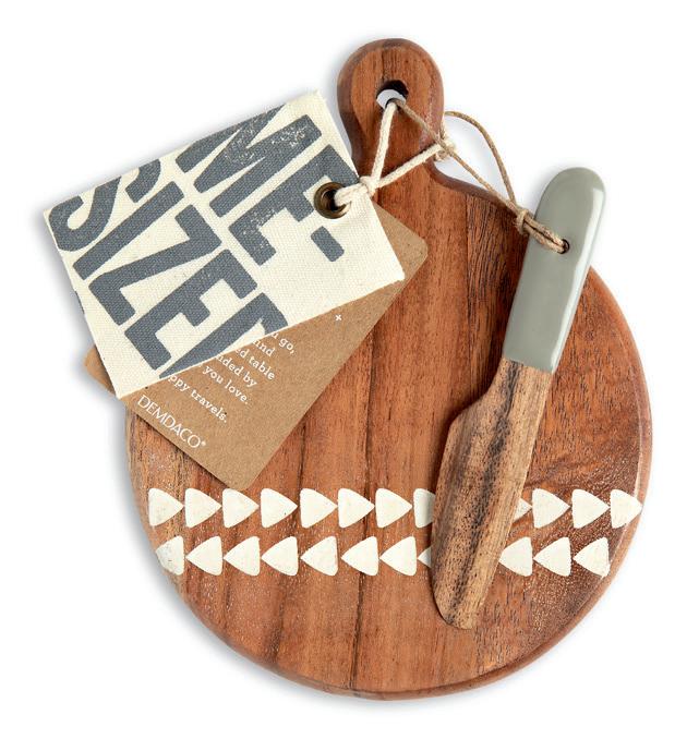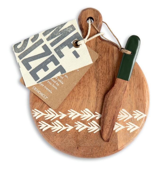 3005051791 Mountain Salt and Pepper Set $9.50 set Min: 2 Size: 2”w x 3”h Pkg: GB/A Season: E Materials: stoneware Care: Handwash Only *638713653239* 3005051794 Mountain Heart Trinket Dish $5.50 ea. Min: 2 Size: 4”w x 3.5”h Pkg: BP Season: E Materials: stoneware Care: Handwash Only *638713653192* 3005051785 Mountain Wood Serving Board with Spreader Set $8.00 set Min: 2 Size: 5”w x 6.5”h Pkg: BP Season: E Materials: wood Care: Food Safe, Handwash Only *638713653185* 3005051788 Mountain Platter with Spoon & Napkin $30.00 set Min: 1 Spatula: Handwash Napkin: Do Not Bleach, Machine Wash - Cold, Machine Wash - Delicate, Tumble Dry - Low, Warm Iron as Needed Size: Spoon: 3”w x 12”long; Napkin: 19”w x 20”h; Platter: 16”w x 10.5”d x 1.5”h Pkg: CB Season: E Materials: stoneware, 100% cotton, wood Care: Dishwasher Safe *638713653215* 14 | DEMDACO Destinations | 888.DEMDACO (888.336.3226) | DEMDACOretailers.com | © 2022 DEMDACO