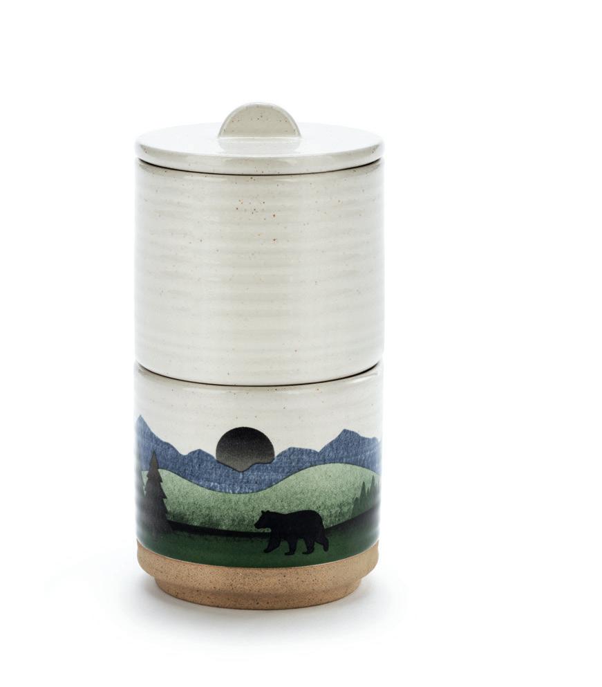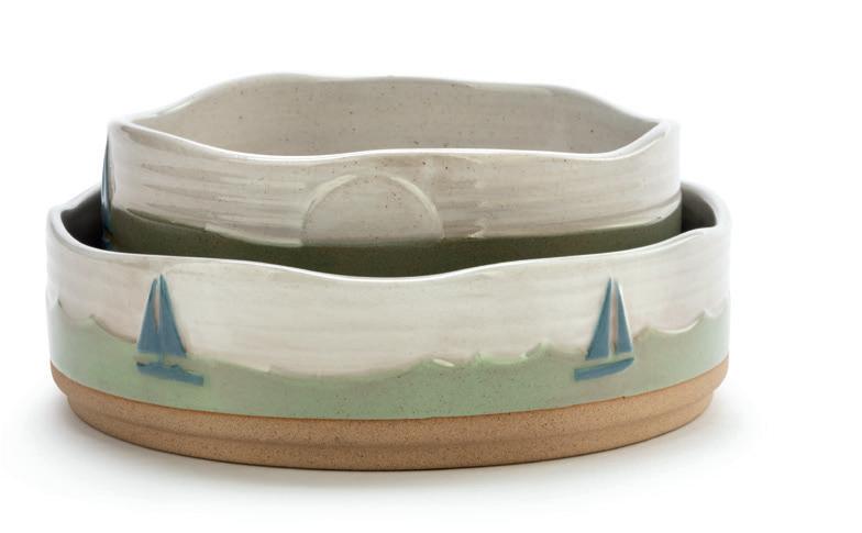 Pkg: BP Season: E Materials: stoneware Care: Candleholder - no candle included 3005051753 On the Beach Stacking Bowls – Set of 2 *638713589767* 3005051752 At the Lake Stacking Bowls – Set of 2 *638713589736* 3005051751 In the Woods Stacking Bowls – Set of 2 *638713589743* 3005051759 On the Beach Candle Holder *638713589781* 3005051758 At the Lake Candle Holder *638713589828* 3005051757 In the Woods Candle Holder *638713589880* Stacking Bowls - Set of 2 $21.50 set Min: 1 Size: Small: 5.5”dia. (19 oz.); Large: 6.5”dia. (19oz.) Pkg: CB Season: E Materials: stoneware Care: Microwave Safe, Dishwasher Safe