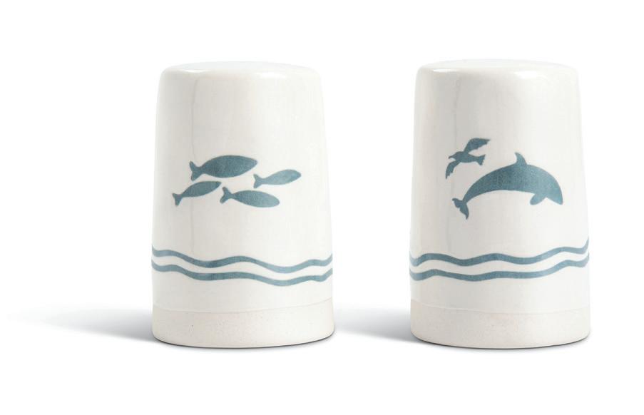 3005051793 Ocean Salt and Pepper Set $9.50 set Min: 2 Size: 2”w x 3”h Pkg: GB/A Season: E Materials: stoneware Care: Handwash Only *638713653246* 3005051796 Ocean Heart Trinket Dish $5.50 ea. Min: 2 Size: 4”w x 3.5”h Pkg: BP Season: E Materials: stoneware Care: Handwash Only *638713653253* 3005051787 Ocean Wood Serving Board with Spreader Set $8.00 set Min: 2 Size: 5”w x 6.5”h Pkg: BP Season: E Materials: wood Care: Food Safe, Handwash Only *638713653222* 3005051790 Ocean Platter with Spoon & Napkin $30.00 set Min: 1 Spatula: Handwash Napkin: Do Not Bleach, Machine Wash - Cold, Machine Wash - Delicate, Tumble Dry - Low, Warm Iron as Needed Size: Spoon: 3”w x 12”long; Napkin: 19”w x 20”h; Platter: 16”w x 10.5”d x 1.5”h Pkg: CB Season: E Materials: stoneware, 100% cotton, wood Care: Dishwasher Safe *638713653161* Catalog ProductLine | 9Product ships after: t 1/4/23 | l 5/1/23 | n 7/20/23 Regional Living