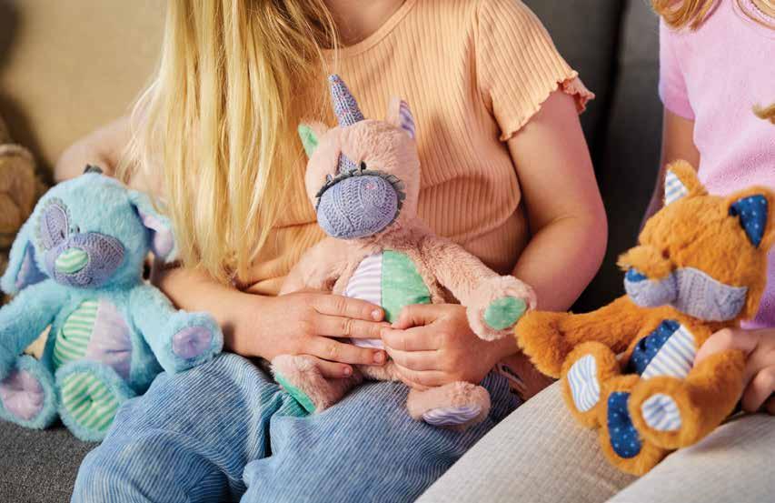 Super soft characters have a sewn in rattle for playful fun.