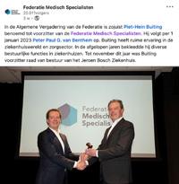 Piet-Hein Buiting benoemd tot voorzitter Federatie Medisch Specialisten Publicatie veldnorm voor snellere start zorgevaluaties