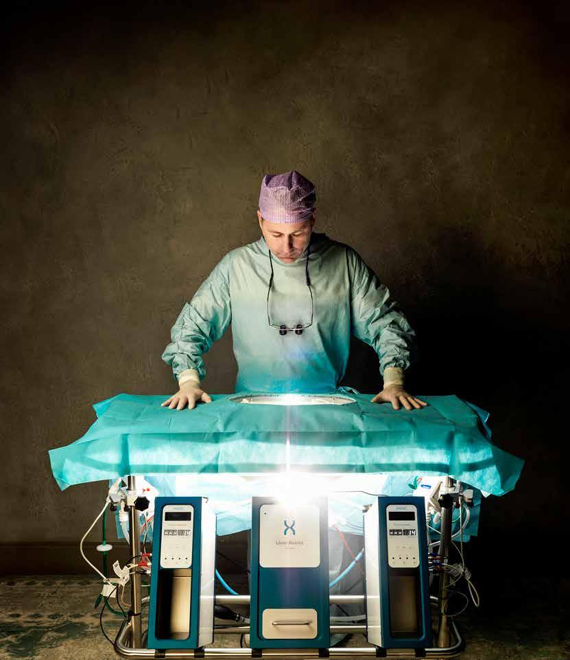 Levertransplantaties zijn doorgaans spoedoperaties omdat de donorlever maar beperkt houdbaar is. Hierdoor vindt meer dan de helft van de levertransplantaties in de avond- en nachtdienst plaats. Volgens Vincent de Meijer, hoogleraar chirurgie en hoofd van het UMCG Transplantatiecentrum, zal daar verandering in komen. De levertransplantatiechirurg rondde met zijn team een onderzoek af waarbij donorlevers in afwachting van de operatie op een zogenoemde perfusiemachine werden aangesloten. Wat blijkt: de transplantatie hoeft niet meer binnen enkele uren plaats te vinden, maar kan probleemloos tot wel twintig uur worden uitgesteld tot de volgende ochtend. De perfusiemachine werd zo’n twintig jaar geleden door onderzoekers en ingenieurs in het Groningse ziekenhuis ontwikkeld. Het door de lever pompen van zuurstofrijke bewaarvloeistof vertraagt de achteruitgang van het orgaan in afwachting van de transplantatie. In de tijd die hiermee wordt overbrugd krijgt het team de gelegenheid om ’s ochtends uitgerust aan de
