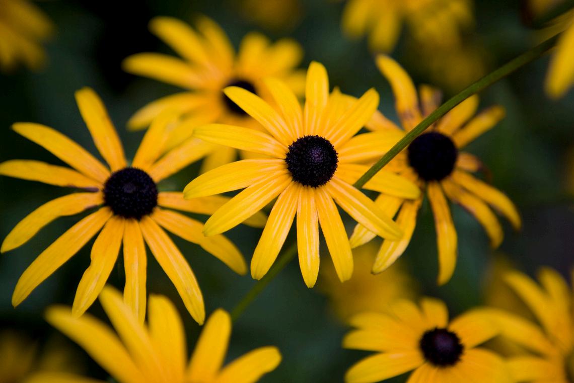 Black Eyed Susans, with their golden-yellow petals and dark centers, bring a dynamic visual appeal and invite pollinators, enhancing the garden's liveliness.
