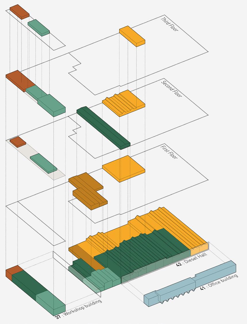 The project can be defined along two themes. According to the first one, the Museum which moves to MÁV’s Northern Maintenance Depot, unravels a plot which has been a blind spot of the urban fabric up until now: it needs to be plugged in the infrastructural circuit of the capital respectively formal and substantial characters of the future urban spaces need to be defined. The second theme considers a view which treats the site and its buildings - as their past relate strongly to the Museum’s topic - as integral part of the exhibition. As such, the industrial halls of the site are about to house the exhibition- and visitable storage spaces of the museum, presenting a dramatic interior, which guarantees an particular and unique experience. The newly added building parts unfold along the formal logic of the halls present on the site, with minimal addition: aisles between the existing structures and a zeppelin-like floating one above the hall on the museum plaza. On the north facade an iconic section articulates, weaving together old and new, the logic of the hall system condensed in one view.