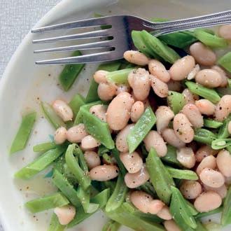 Schil de aardappelen en kook ze gaar. Maak de snijbonen schoon en snijd er reepjes van. Kook ze beetgaar. Laat de witte bonen uitlekken. Giet de aardappelen en stamp ze met de vloeibare bakboter en een scheut melk tot puree. Schep er de snijbonen en de witte bonen door. Blote billetjes in het gras smaakt erg goed met rookworst.
