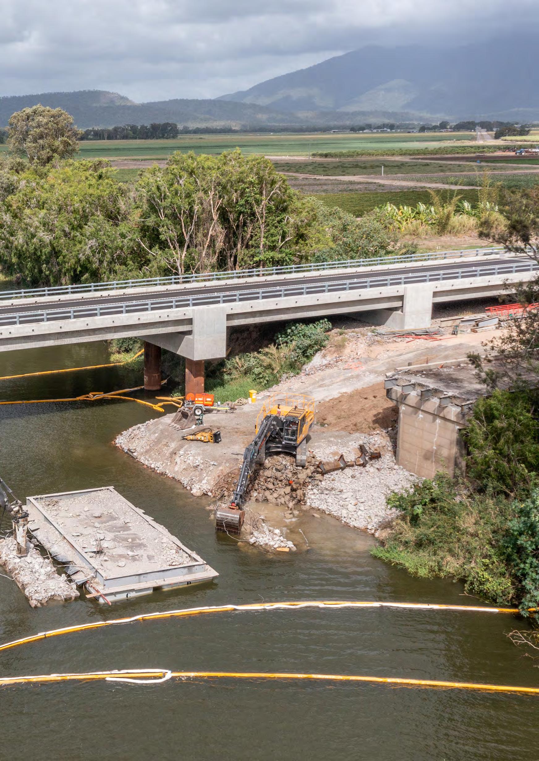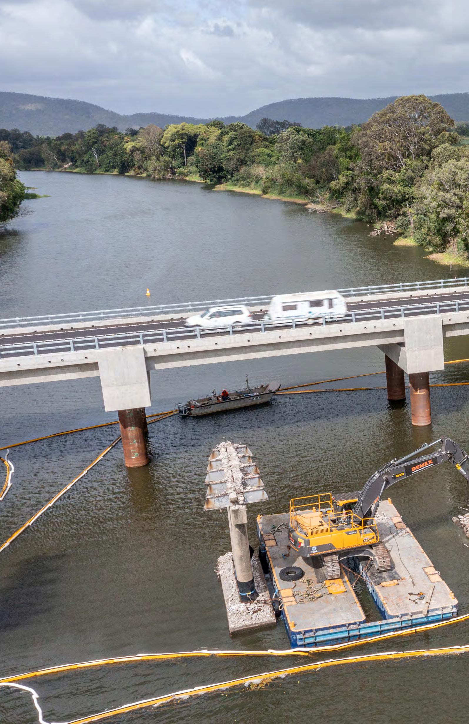 The 307 metre Bateman’s Bay Bridge demolition project was undertaken as a collaborative arrangement with the principal contractor, John Holland as part of the $274 million Batemans Bay Bridge replacement project accross the Clyde River in coastal New South Wales. Innovative bridge span lifts undertaken using self-propelled modular transporters (SPMT). Innovative $1.2 million submersible custom designed diamond wire saw used for underwater caisson removal.