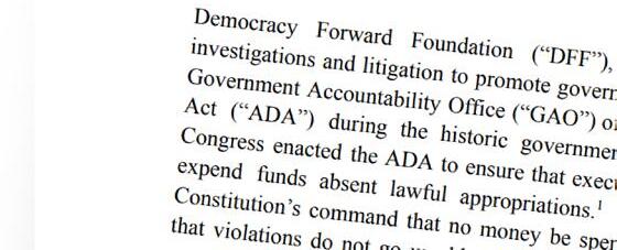 In a separate letter to the GAO, Democracy Forward outlines potential violations of the Antideficiency Act, which codifies Congress’s constitutional power of the purse. That complaint documents actions taken during the shutdown that may have unlawfully created new financial obligations or expenditures without congressional authorization, including mass layoff planning, redirection of funds to pay troops, and the purchase of two $172 million private jets for DHS.