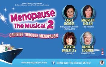 Starring Carli Norris (Doctors, Hollyoaks, Eastenders), Maureen Nolan (The Nolans), Rebecca Wheatley (Casualty) and Daniele Coombe (West End Star), we present the final UK tour of the smashhit Menopause the Musical 2 - Cruising Through Menopause. All aboard as we take you on a trip of self-discovery, love and friendship!