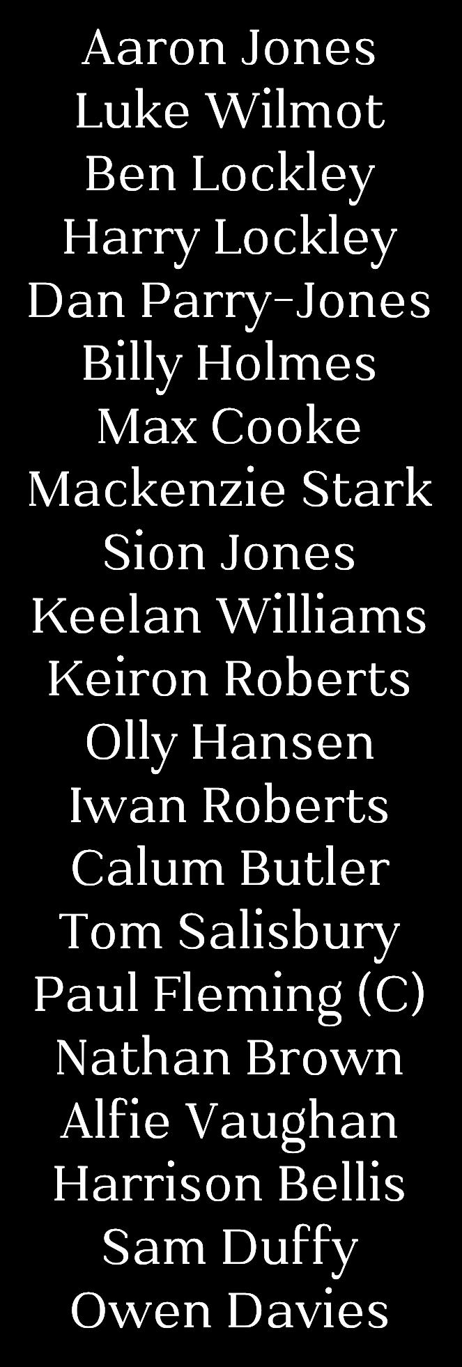 Top Row (Left to Right): Max Cooke, Dan Parry-Jones, Billy Holmes, Luke Wilmot, Owen Davies, Tom Salisbury, Alfie Vaughan