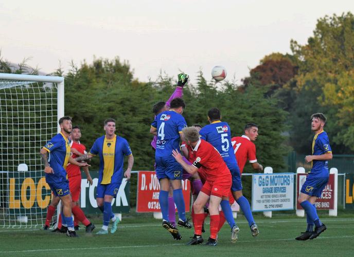With 34 minutes on the clock the visitors doubled their lead when Moorley denied an initial shot from range before Cottis followed in for his and Flint’s second Moments later Town came millimetres from pulling one back when a ball over the top found Tate who lifted the ball over the keeper from the edge of the box, which dropped on to the top of the bar