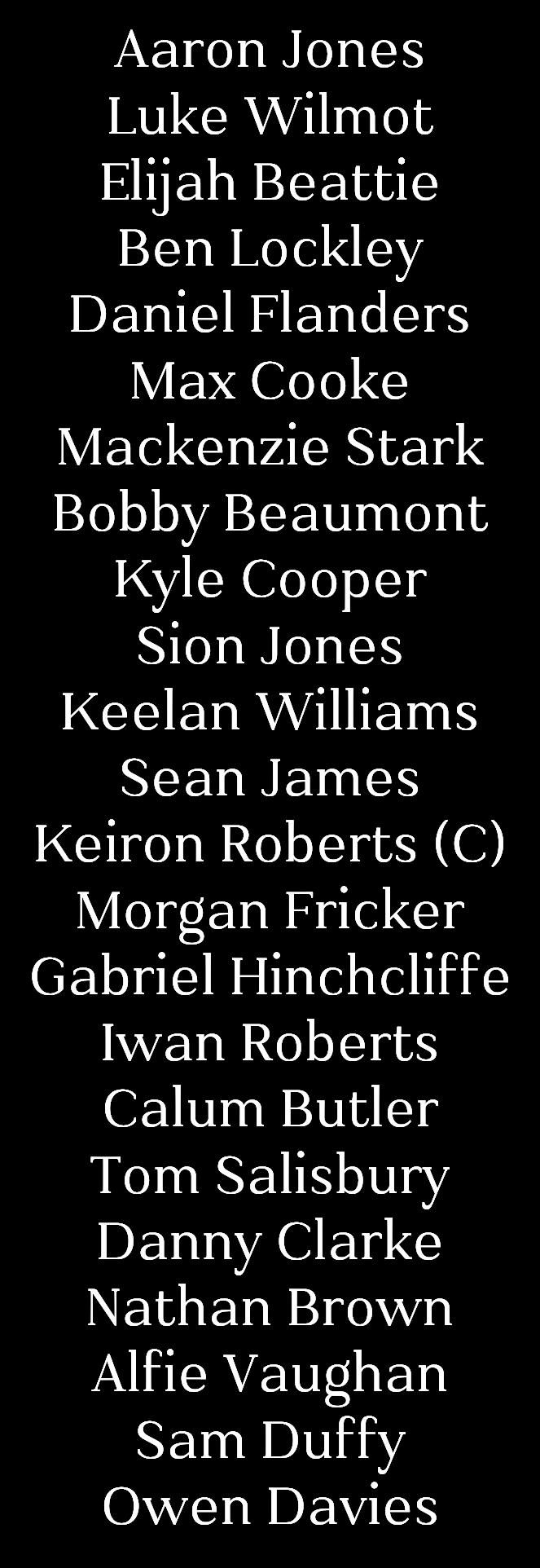 Subs: Wilmot, Holmes, S Jones, Stark, Hansen, I Roberts, Brown