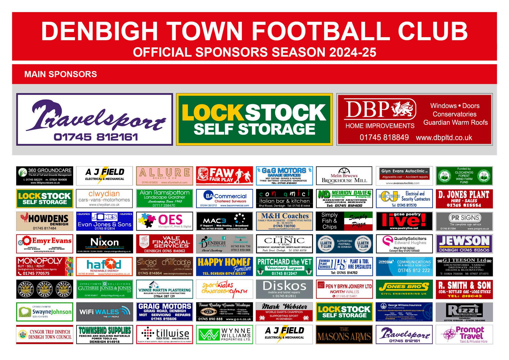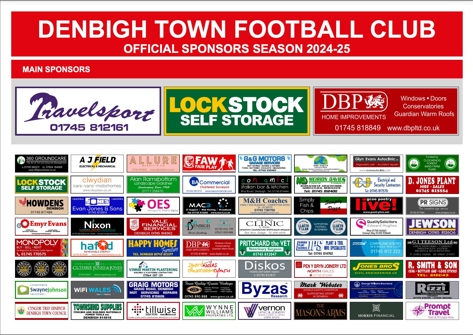 Sponsor a player at Denbigh Town for just £75 a season! Increase your support by helping your local community club and join our sponsors with superb affordable advertising opportunities for your business, or simply a way of backing the Town Contact info@denbightownfc.co.uk.