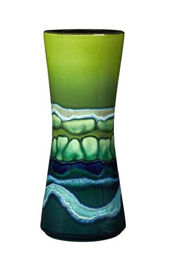 When all the layering of glaze is complete, the pieces are sent to the kiln. The magic and intricacy of this skilled application is realised in the fires of the kiln; the heat driving each glaze to react with its neighbour to give the unique and dramatic patterns synonymous with Poole Pottery.