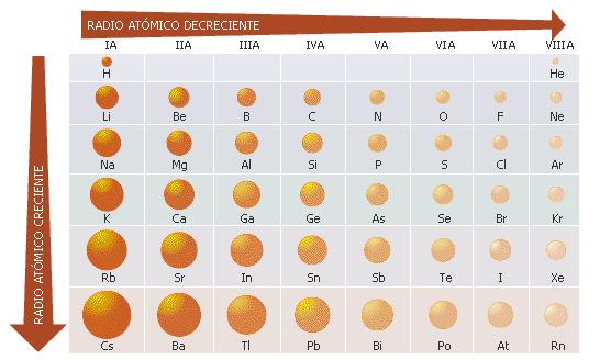 Se define como la mitad de la distancia entre los centros de dos atomos que formen un enlace.En un mismo grupo el radio atomico aumenta conforme aumenta el numero atomico.El radio atomico aumenta de derecha a izquierda en un mismo periodo