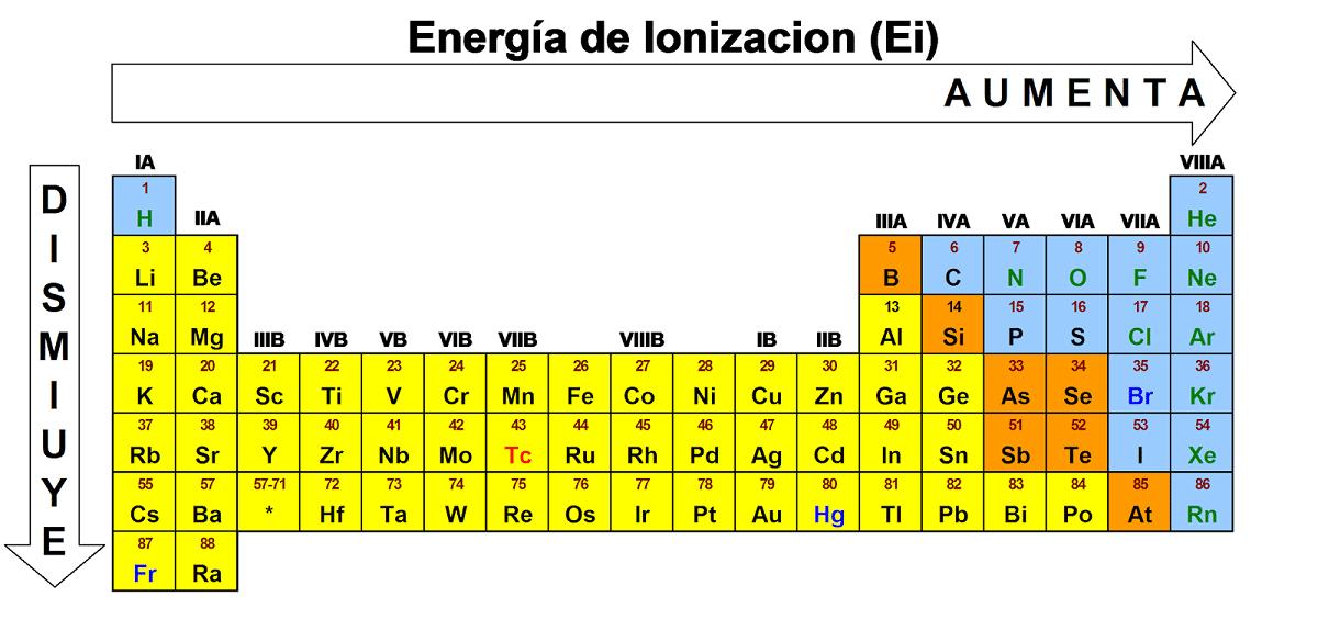 Esta energia mide los cambios energicos que van asociados con la remoción de electrones de los átomos en el estado gaseoso o aislado.Es la energia necesaria para desprender un electrón del átomo