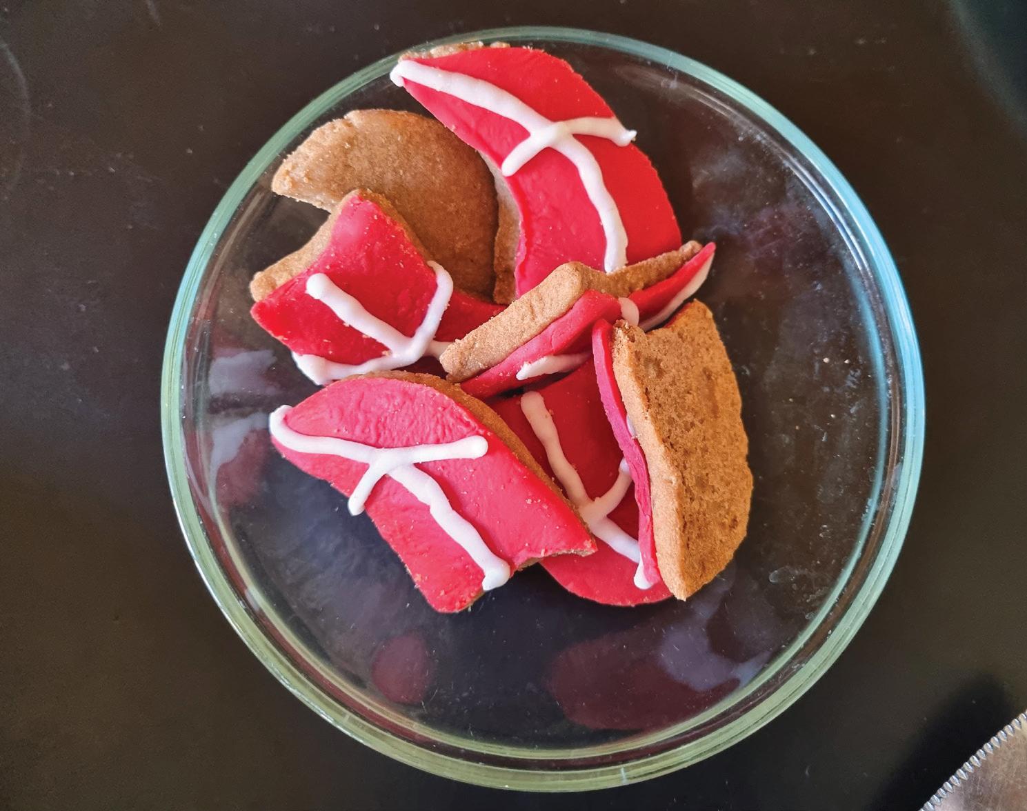 Og sådan er det også, når vi er kirke i udlandet. Det er altid et hit at servere en dansk ret og sælge dansk mad til basaren. For derved stilles længslen, der rumsterer i enhver dansker i udlandet. Vi længes efter det danske spisebord. Og ikke sjældent har vi oplevet en nærmest bibelsk glæde sprede sig over ansigtet, når den stegte flæsk eller det højtbelagte smørrebrød stilles på bordet. Velbekomme og amen!