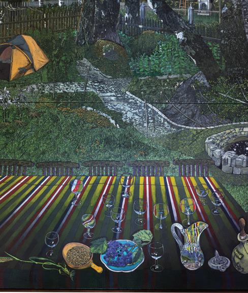 Jesper Christiansen har skabt det fantastiske og fem meter høje alterbillede ”Skyggeflor –Getsemane Have”. Indvielsen fandt sted under kongelig bevågenhed i 2019.