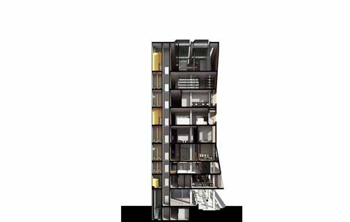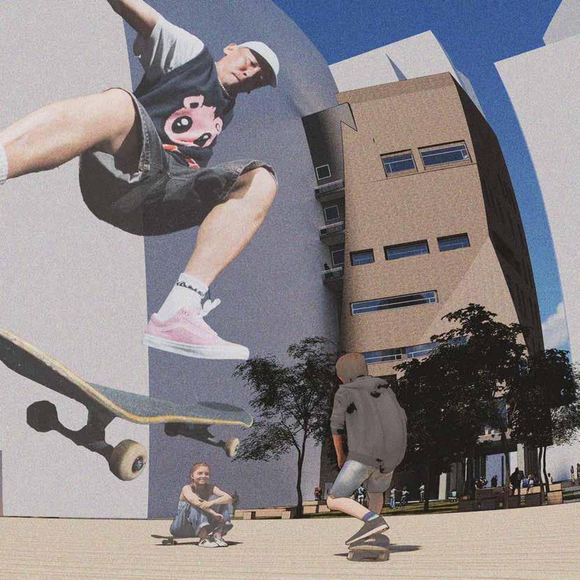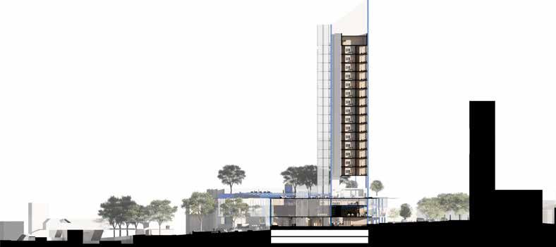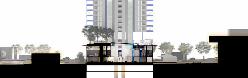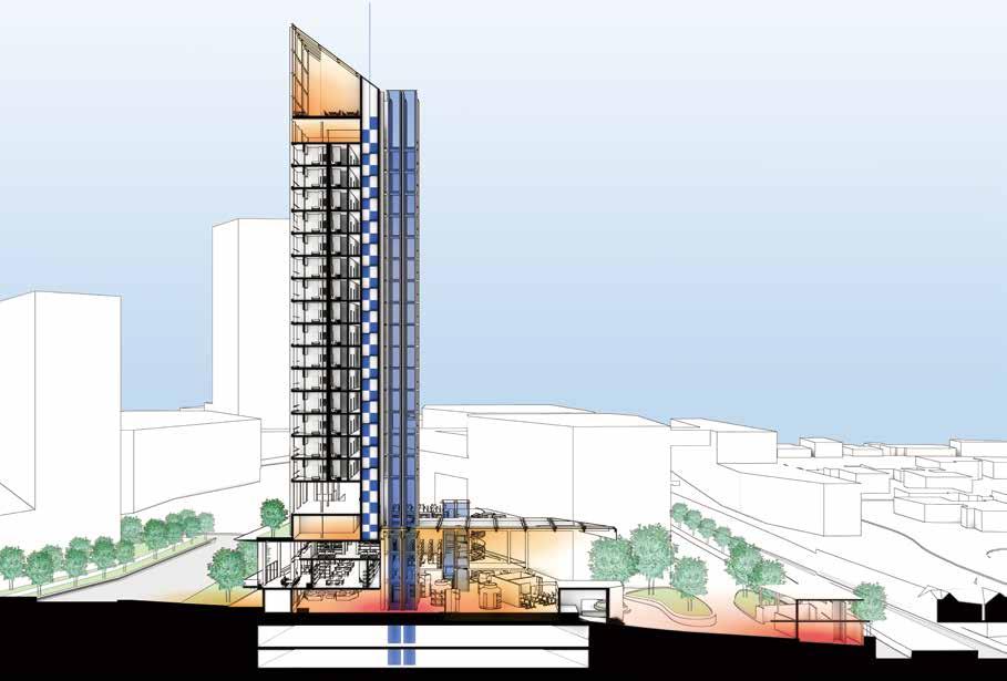 Anchored by a sunken public plaza, the vertical program blends galleries, studios, residences, workshops, co-working areas, and a food court into a spatial journey of creation and encounter. The architecture is structured around public, semi-public, and service zones, with internal “nodes” offering moments of interaction and pause. A porous building form enhances openness and aligns with surrounding cultural infrastructure, supporting both visibility and accessibility. Sustainability is embedded as a responsibility, not an add-on. Materials such as K-BRIQ recycled bricks and geopolymer concrete reduce embodied carbon, while double-skin facades, water reuse systems, and photovoltaic panels drive performance toward net-zero. Lifecycle analysis confirms ~50% GHG emissions and ~88% nonrenewable energy reductions. PAS is ultimately a proposition for a climate-aware, community-embedded arts facility — generous in form, function, and intent.