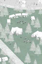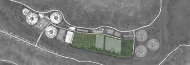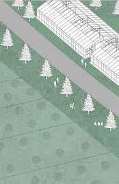 The development unfolds in three adaptive stages, each designed as both a construction phase and a period of learning. Stage 01 initiates the social and productive foundation with three residential clusters, a shared workshop, a playground, and the first field area. It also introduces a nursery, storage, a camping field for visitors, and a bridge crossing the site’s natural boundary. Stage 02 (2045) expands the settlement through additional housing modules, while Stage 03 (2065) activates the full landscape, integrating broader agricultural and communal programs.