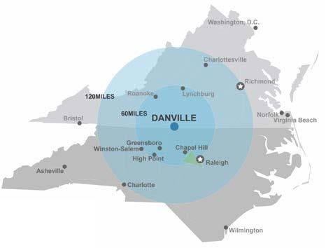 When considering locations, companies tend to look at the population and available labor force within a 45- to 60-mile radius. According to 2022 U.S. Census figures, just over 136,000 people live in the Danville region, including Pittsylvania and Halifax counties, including nearly 74,000 between ages 20 and 65, but about 1.2 million people reside within 45 to 65 miles. That includes Lynchburg and Roanoke, as well as the North Carolina metropolitan areas of Raleigh-Durham-Chapel Hill and Greensboro-Winston-Salem-High Point. Combined, those areas have a labor shed of more than 540,000 potential workers.