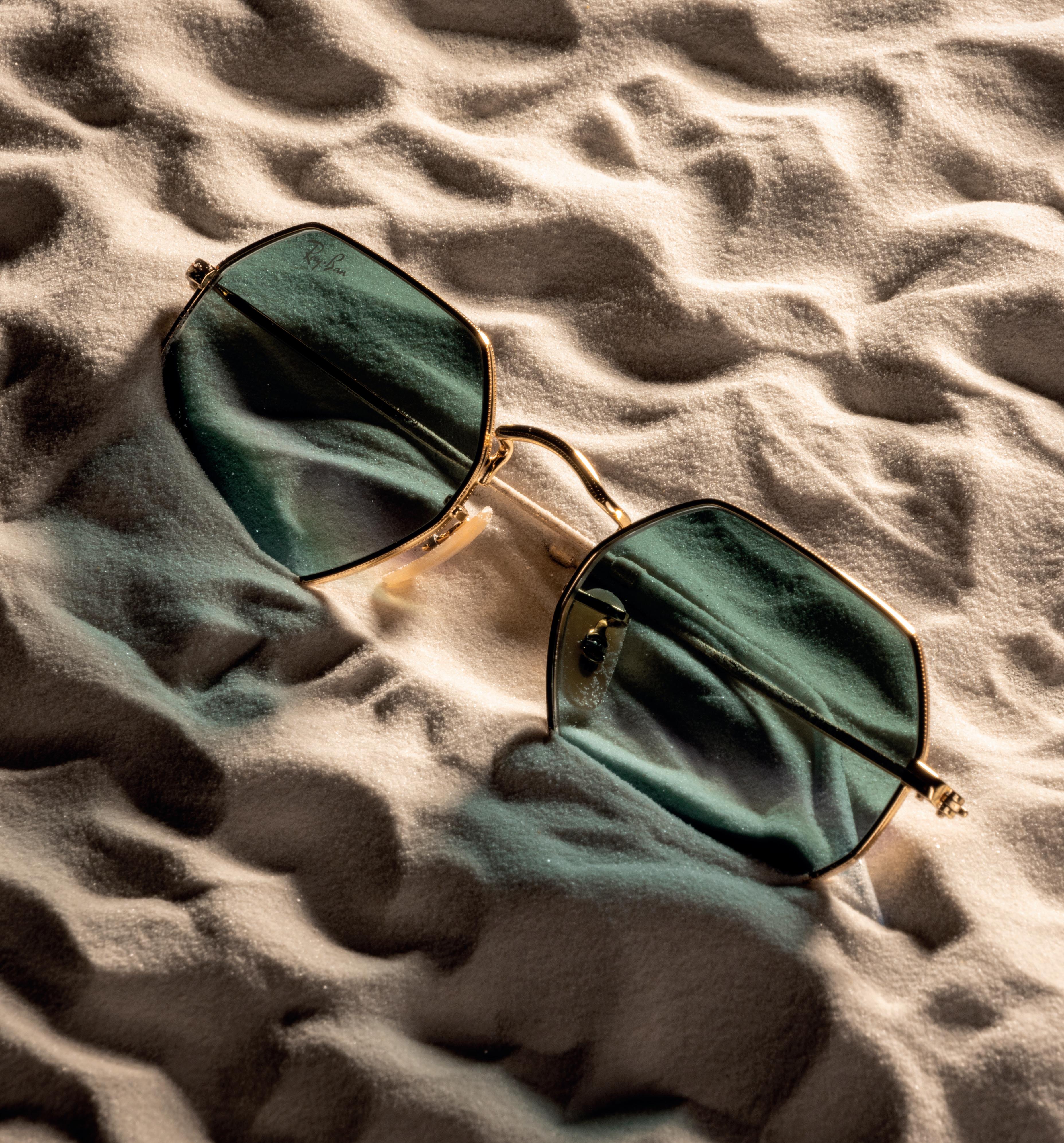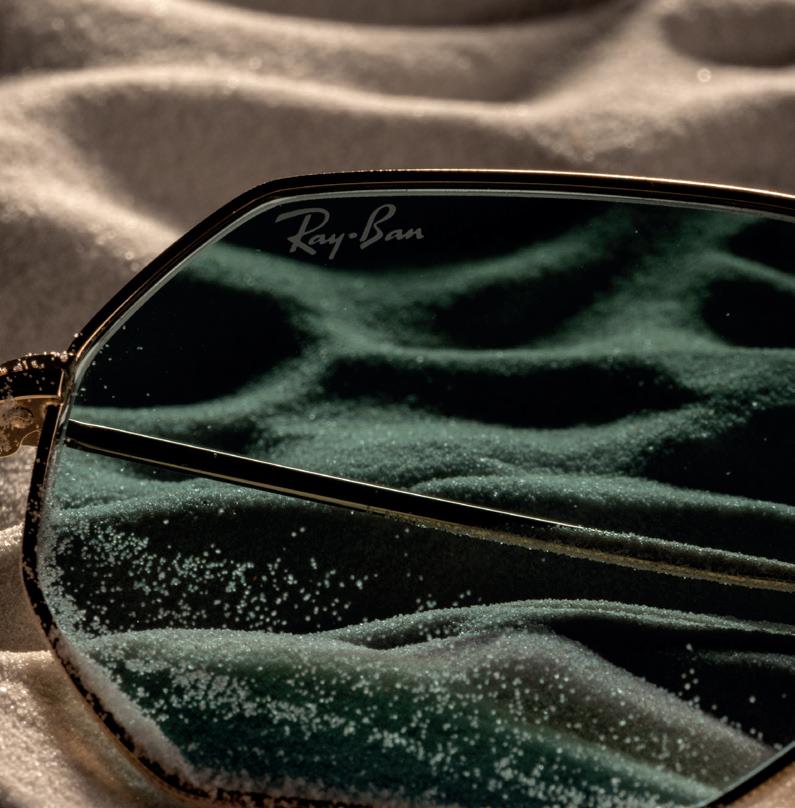 The semester project in the photography course was to create a product photo, including a detail shot and an application example. I chose my Ray-Ban sunglasses. For the background, I used decorative sand and backlit the glasses to give the shadow a bluish hue. The two detail shots highlight the „Ray-Ban“ inscription and the hinge of the arm. The goal of this project was to design a poster or layout. The layout should include the brand‘s logo, the photos, and a title and a subtitle.