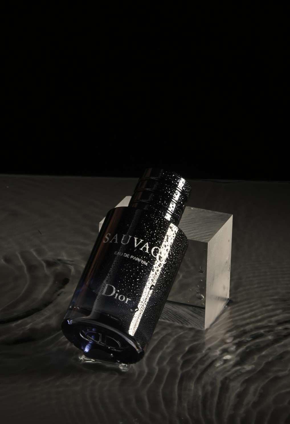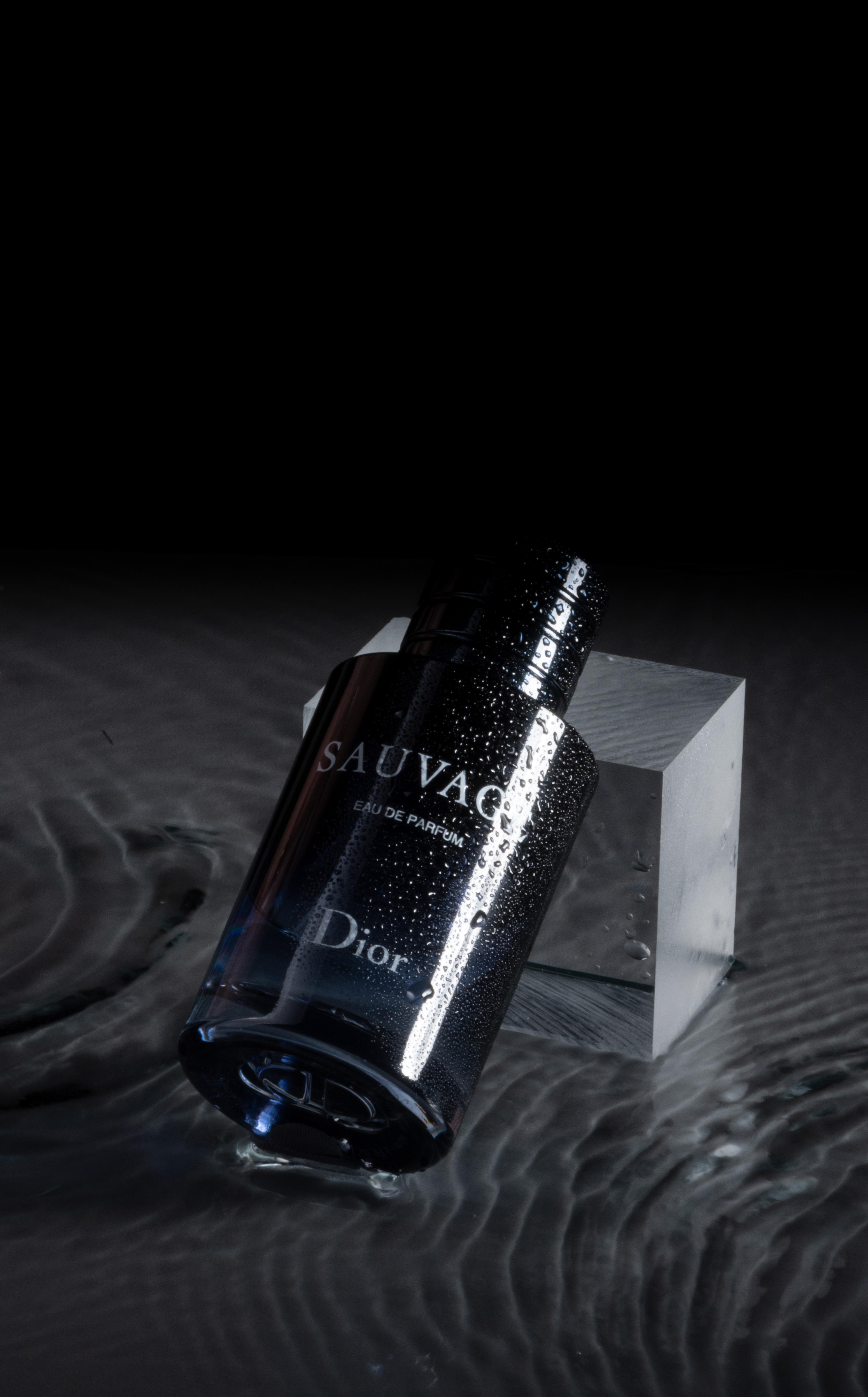 My goal was to capture the mysterious and cool color scheme of Dior Sauvage. In the ‚before‘ picture, the light appears very yellowish, the background has a sharp edge, and the photo looks very bland.