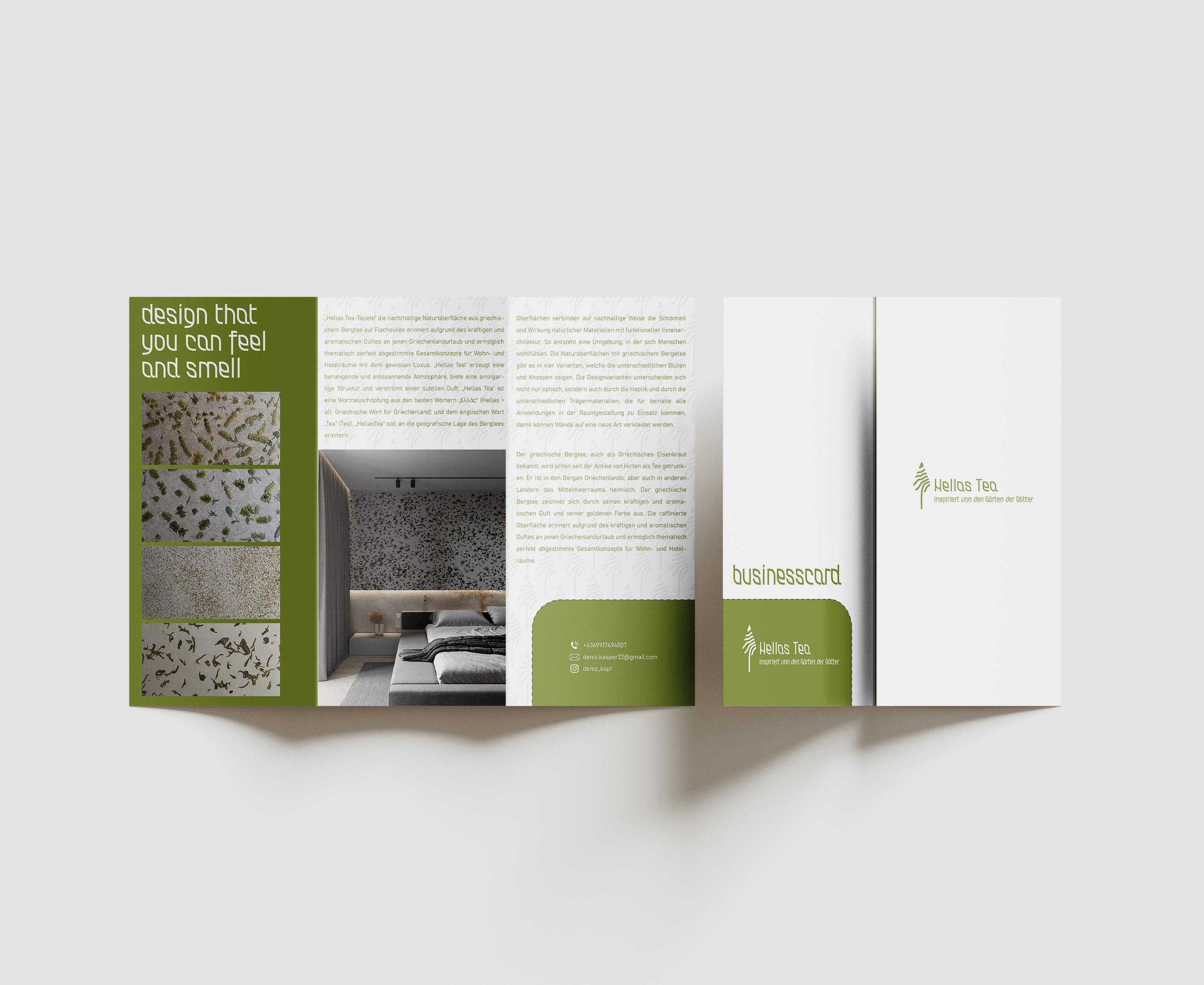 In the ‚Advertising‘ course, the task was to design a flyer promoting an existing project/product. The flyer had to feature a self-designed logo and text about the product. I chose to focus on natural surfaces, developed in collaboration with Organoid. The flyer displays four patterns made from Greek mountain tea. In reality, you can touch and smell the different patterns. The logo symbolizes Greek mountain tea and also serves as the branding pattern.And a fun detail is the business card that can be torn off from the flyer