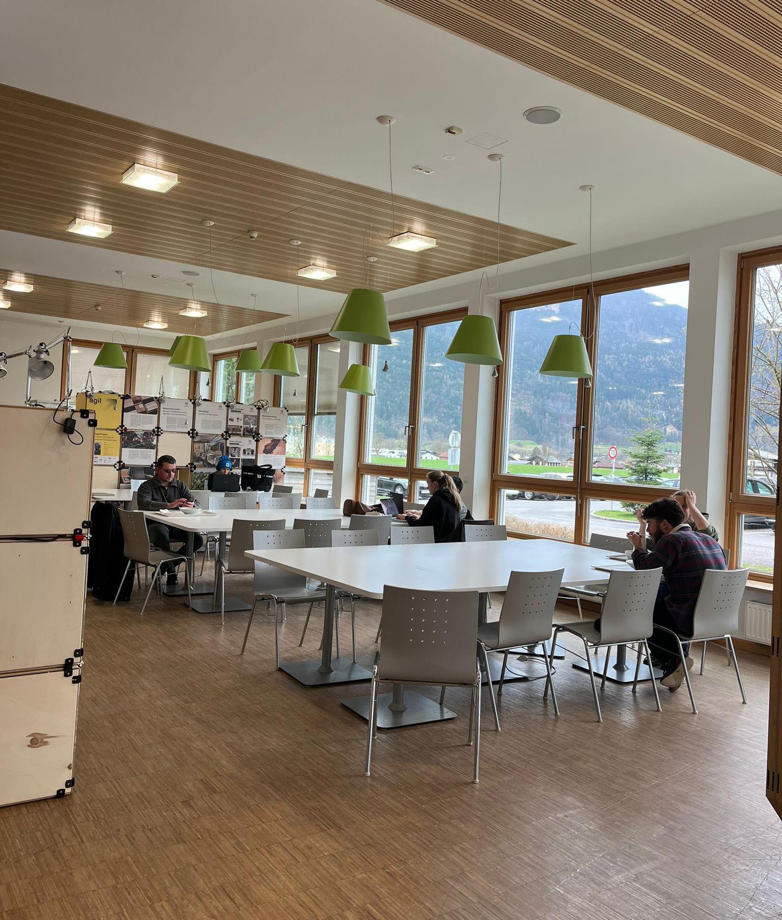 A place where residents and outsiders can eat, drink, and talk together. The café is located on the second floor and offers visitors a view above the clouds of Kuchl.