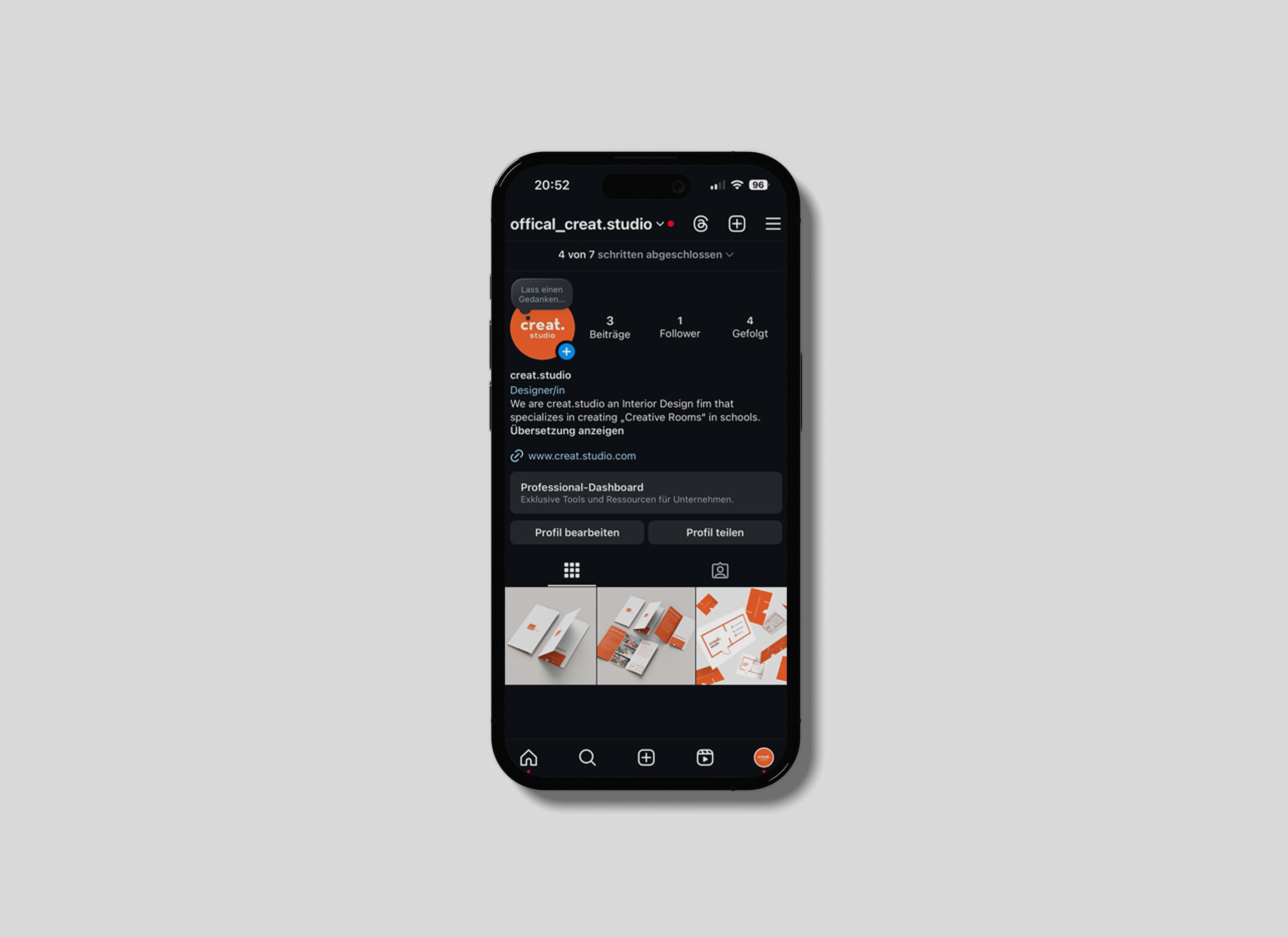 Creat. Studio is a fictional interior design company that specializes in creating creativity-enhancing learning environments at universities. This company was developed as part of my bachelor‘s thesis, which focused on redesigning the cafeteria at FH Salzburg.