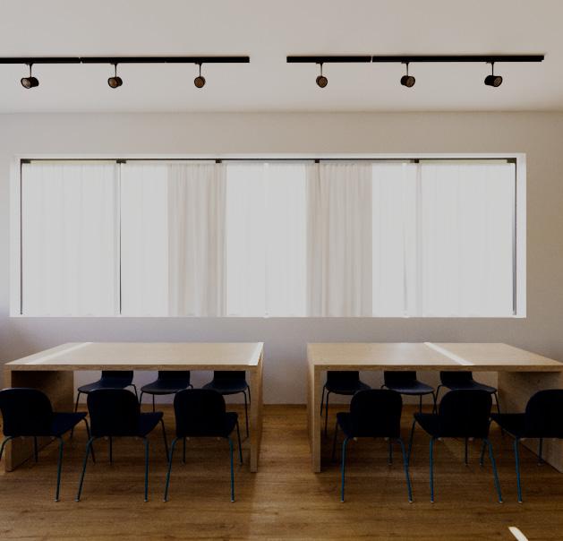 The first two floors of the building are dedicated to residential areas (50 - 70 sqm), specifically designed for individuals and families who value a close connection between living and working spaces. The apartments on the second floor are similarly equipped to those on the first. The café serves as a social hub for residents and external guests. It offers a relaxed atmosphere, ideal for informal meetings or breaks during work. With a selection of healthy and local foods and beverages, it becomes a central element of the building. Adjacent to the café is a modern coworking space that provides flexible workstations, meeting rooms, and all necessary technological connections. This area is designed to foster creativity and collaboration, making it ideal for freelancers, students and so on.
