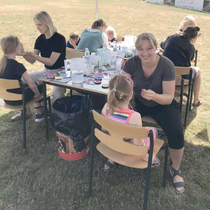 blive malet i ansigtet, og selvom køen kunne være lidt lang, så var det en meget populær aktivitet for de lokale børn, der var mødt talstærkt op og fik en dejlig dag under sommerfesten.