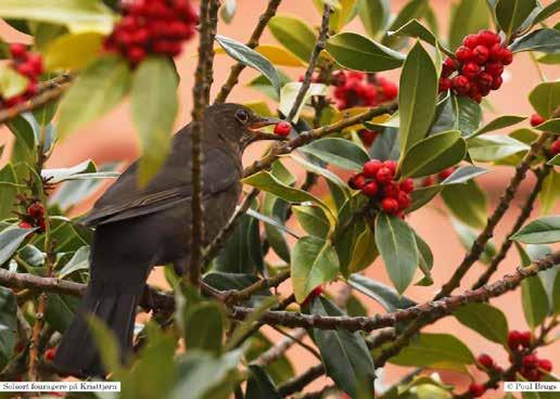 På havnebakken i Lunde borg står en stor, flot krist torn-busk. Det ved de lokale solsorte, som sammen med andre drosselfugle som sjag gere og vindrosler holder meget af bærrene.