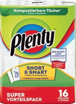 Papier de ménage Plenty Short & Smart, 16 x 74 feuilles / Original, 16 x 45 feuilles