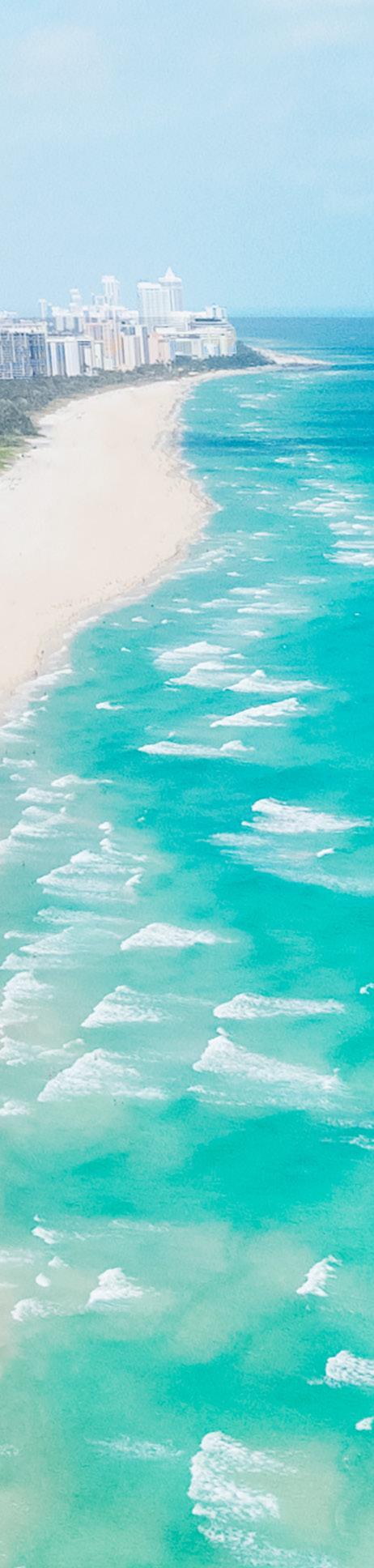 Welcome to the vibrant city of Miami, where sunshine, sea breezes, and a melting pot of cultures combine to create a truly unique and captivating living experience. Nestled on the southeastern coast of Florida, Miami beckons residents with its year-round tropical climate, world-renowned beaches, and a bustling urban scene that e ortlessly fuses art, cuisine, and nightlife. As the gateway to Latin America, this multicultural metropolis o ers a diverse tapestry of traditions and avors, making it a city like no other. Whether you seek a laid-back beach lifestyle or a dynamic urban adventure, living in Miami promises an exhilarating journey of discovery and an opportunity to embrace the pulse of a city that never sleeps. As top producing real estate associates, our local expertise has helped our clients nd their perfect home in this ideal city. From the private communities of Coral Gables to the waterfront homes of Miami Beach, we are here to reach you real estate goals.