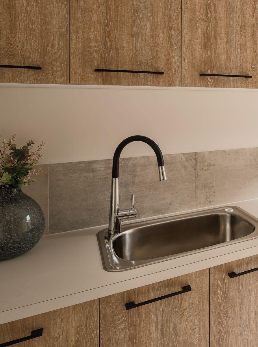 choice of Choice of 5 stylish chrome tapware styles to kitchen and laundry.